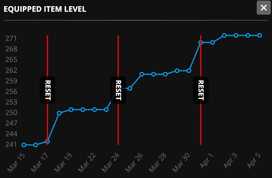 Every two weeks you get a chance to drop a fresh 285 into a slot that doesn’t have a Myth track piece or a juicy bonus effect yet. That adds up fast.